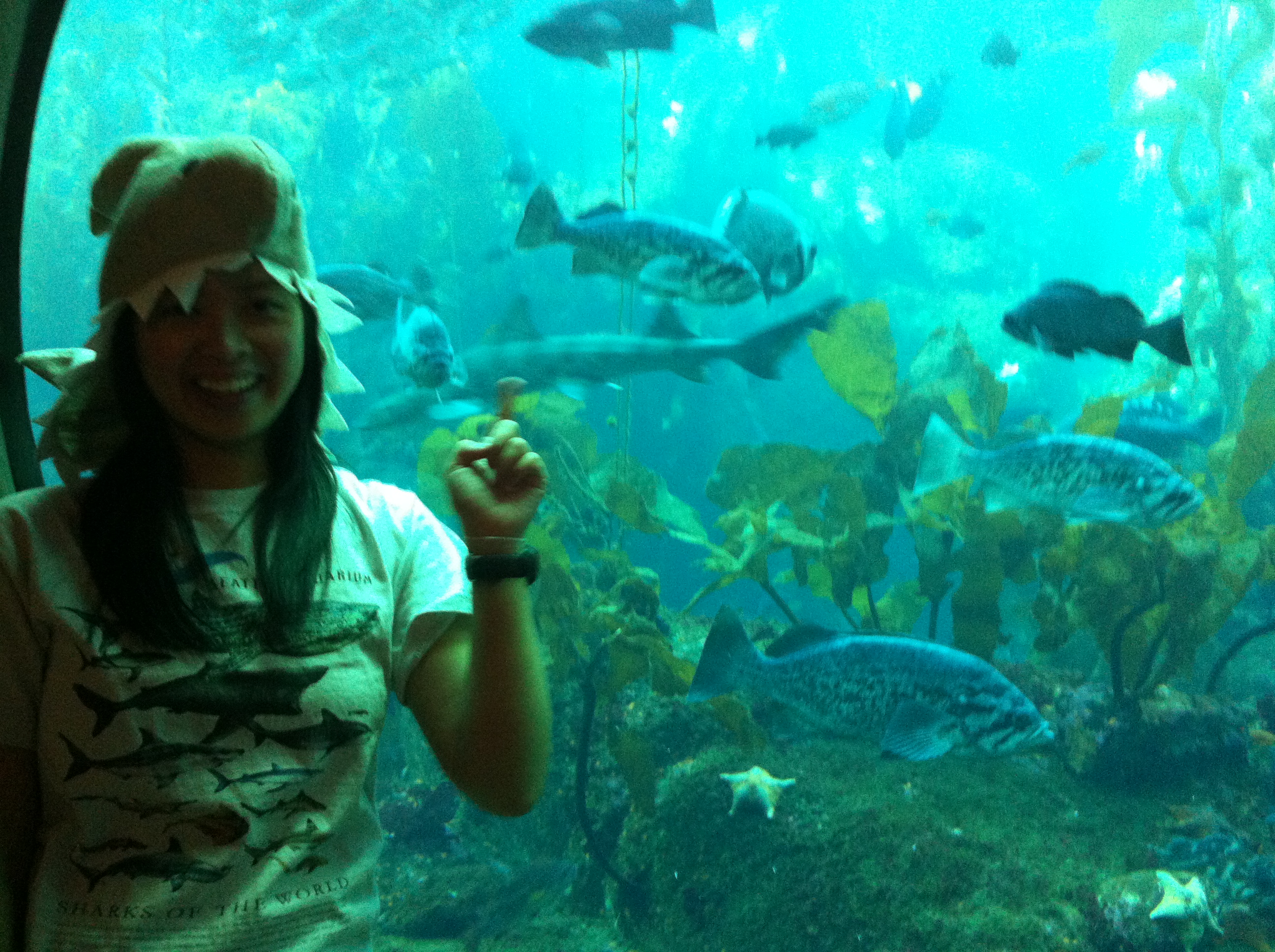 Previous Image Next Image sharkdays_feb2013_10 MLML researcher Jessica Jang points out the leopard shark in a Monterey Bay Aquarium tank.