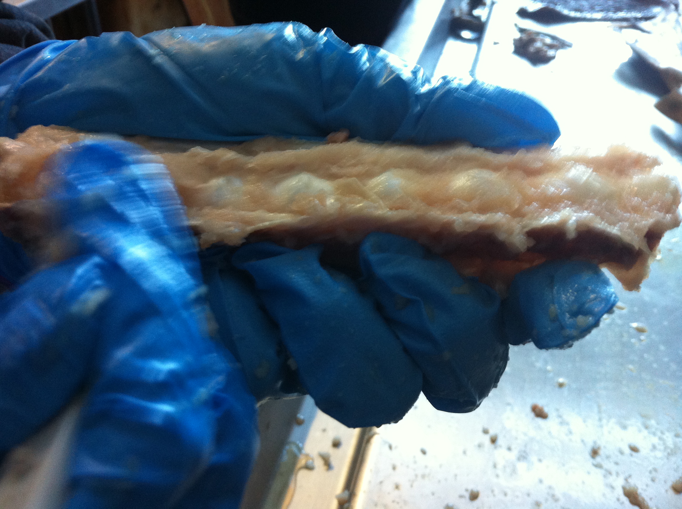 Previous Image Next Image Spine work Claire scrapes away meat to expose the bare spine of a specimen leopard shark.