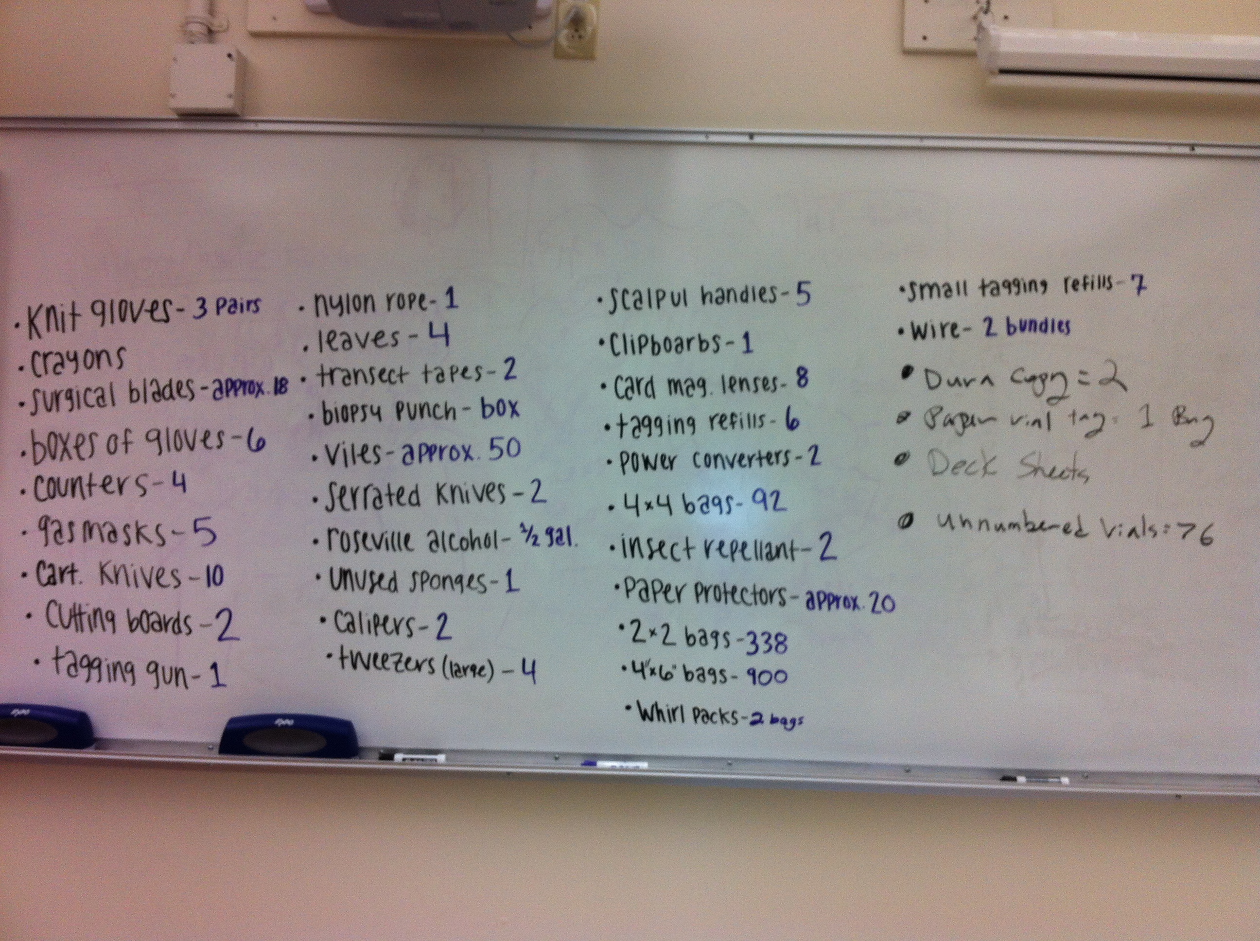 Previous Image Next Image sa_lab_22feb2014_05 Shark Army interns work together to inventory PSRC’s current stash of materials and tools.