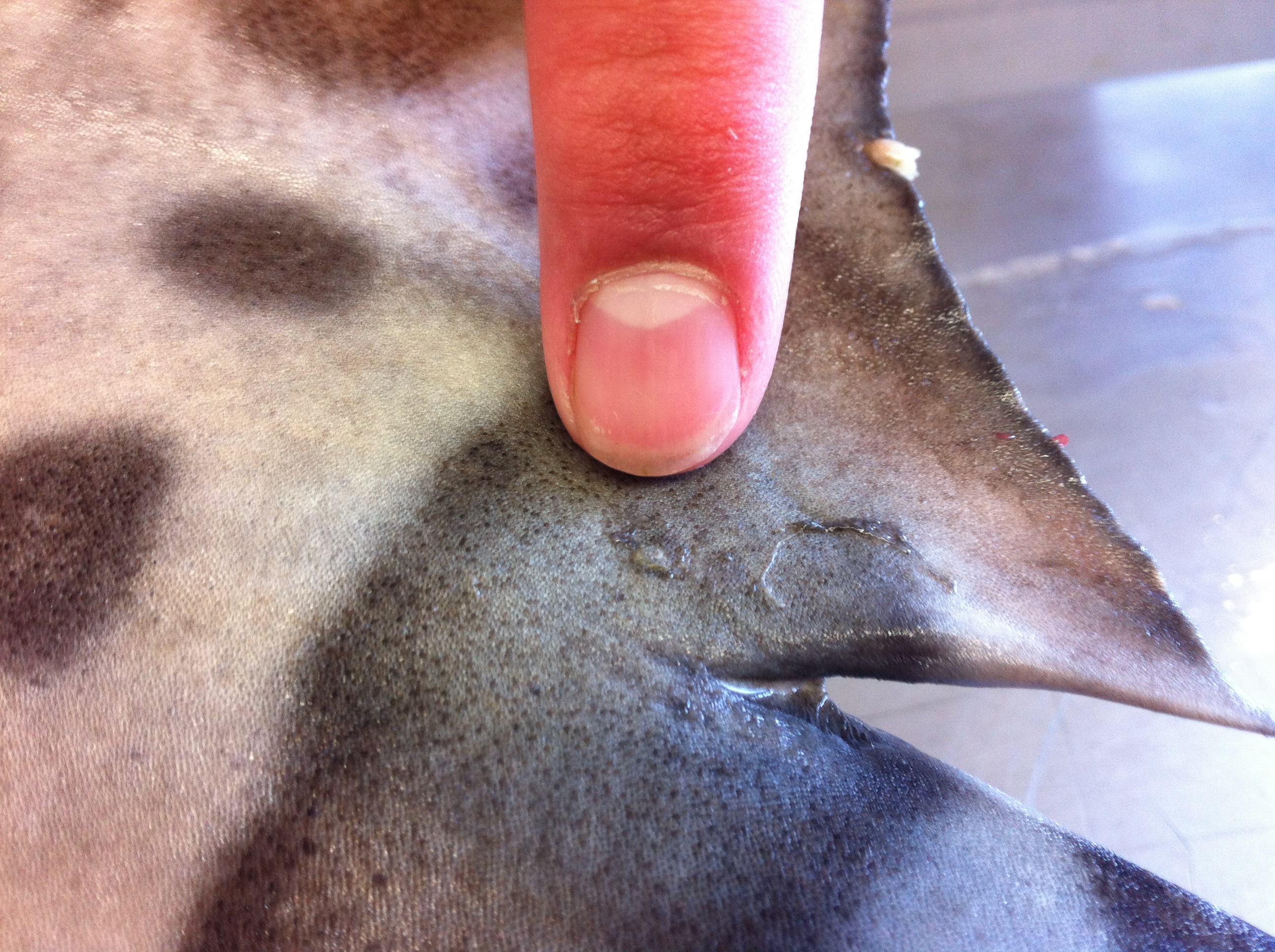 Previous Image Next Image sa_lab_7sept_018 SJSU marine science masters student Paul points out strange parasites on a leopard shark specimen.